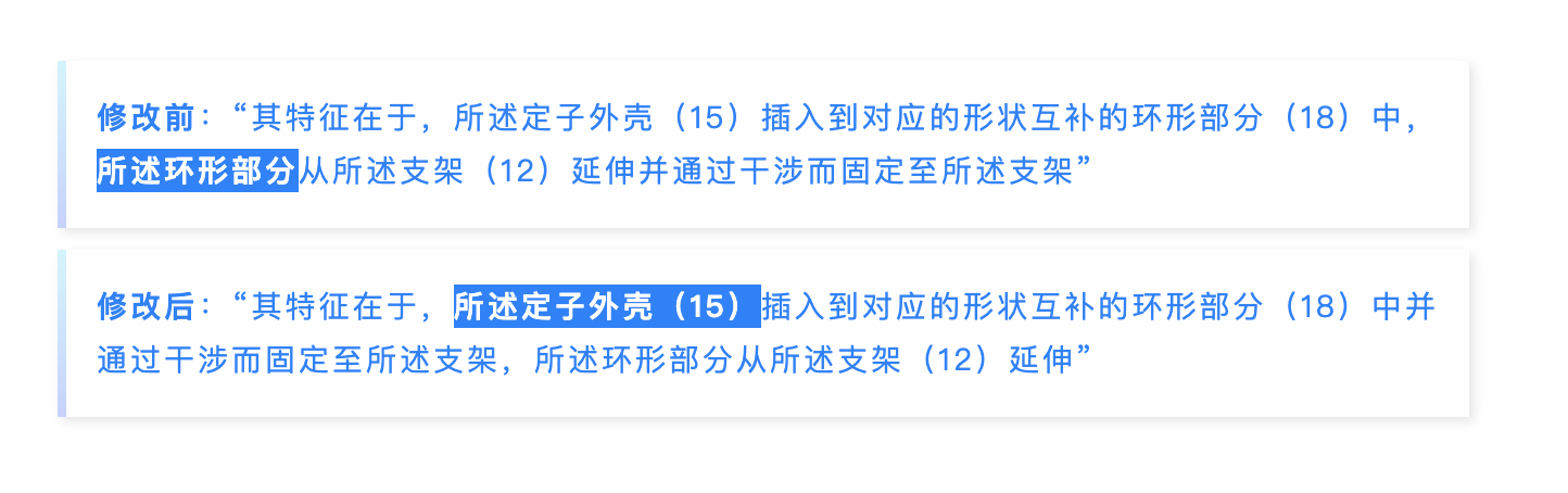 我們能夠看到,專利權(quán)人的改動(dòng)是將通過(guò)干涉而固定至所述支架的主體由“環(huán)形部分”修改為了“定子外殼”。對(duì)此,權(quán)利人一方辯稱,修改前的權(quán)利要求1中存在筆誤,主張根據(jù)美國(guó)和歐洲同族專利文件修改明顯錯(cuò)誤,并主張這是從權(quán)利要求書(shū)上下文和說(shuō)明書(shū)直接得到的唯一的技術(shù)方案,沒(méi)有超出原權(quán)利要求書(shū)和說(shuō)明書(shū)的記載。