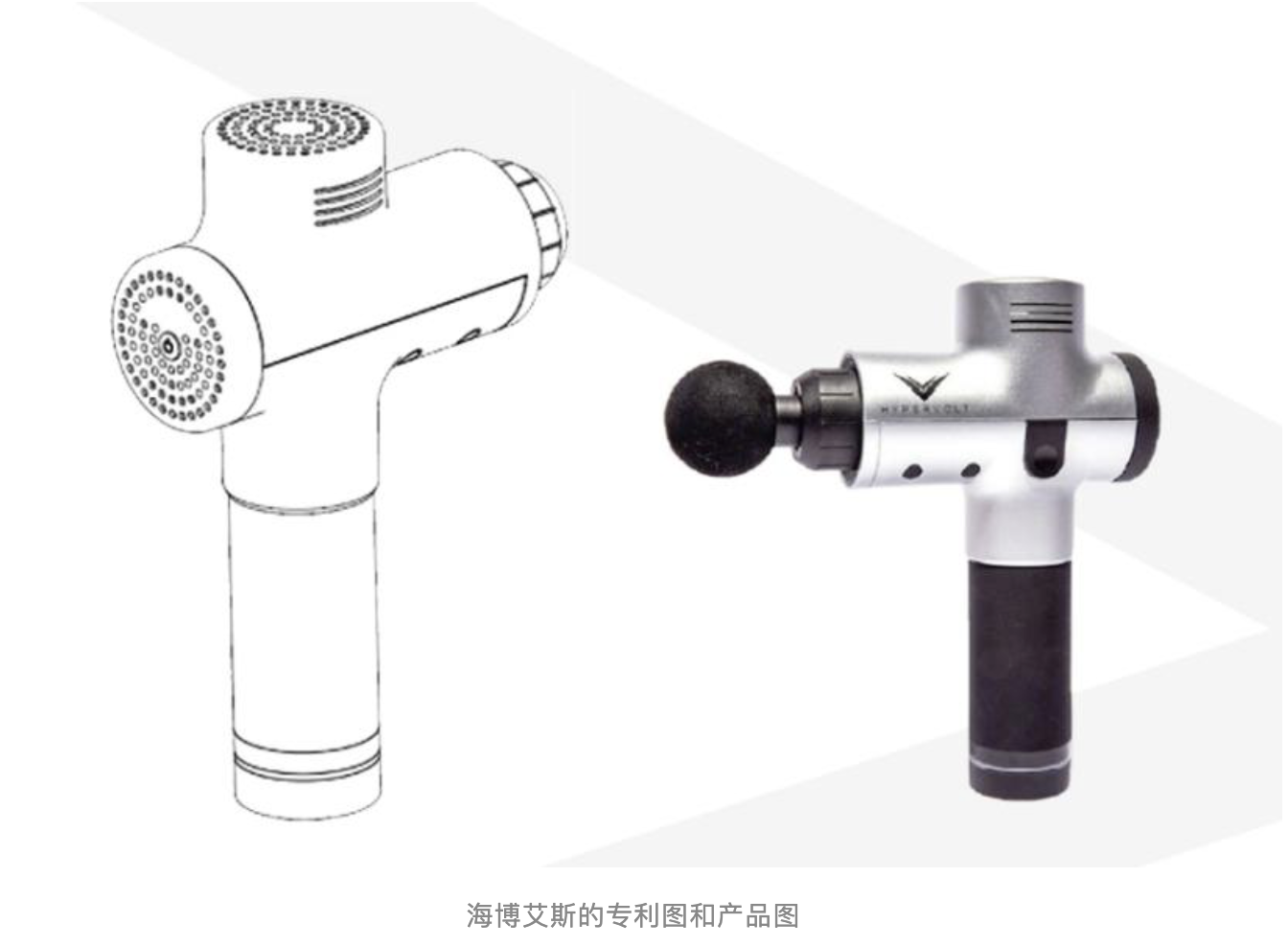 視頻中只有幾秒的畫面,并且只能看到筋膜槍的一個(gè)側(cè)面,握把等處還被使用者的手部遮擋。對(duì)此補(bǔ)強(qiáng)證據(jù)為:新浪NBA官方微博和專利權(quán)人的微博都宣傳了“詹姆斯同款Hypervolt筋膜槍”,并配有錄像所示場(chǎng)景的gif圖以及按摩槍的立體圖。盡管視頻中受拍攝角度限制,未顯示按摩槍的全部設(shè)計(jì)細(xì)節(jié),但是在“新浪NBA官方微博”和“Hyperice官方微博”均明確記載比賽現(xiàn)場(chǎng)和微博所示按摩槍為同款的情況下,微博中所示按摩槍立體圖中的設(shè)計(jì)特征可以用于表明比賽現(xiàn)場(chǎng)公開的按摩槍的具體設(shè)計(jì)特征。
