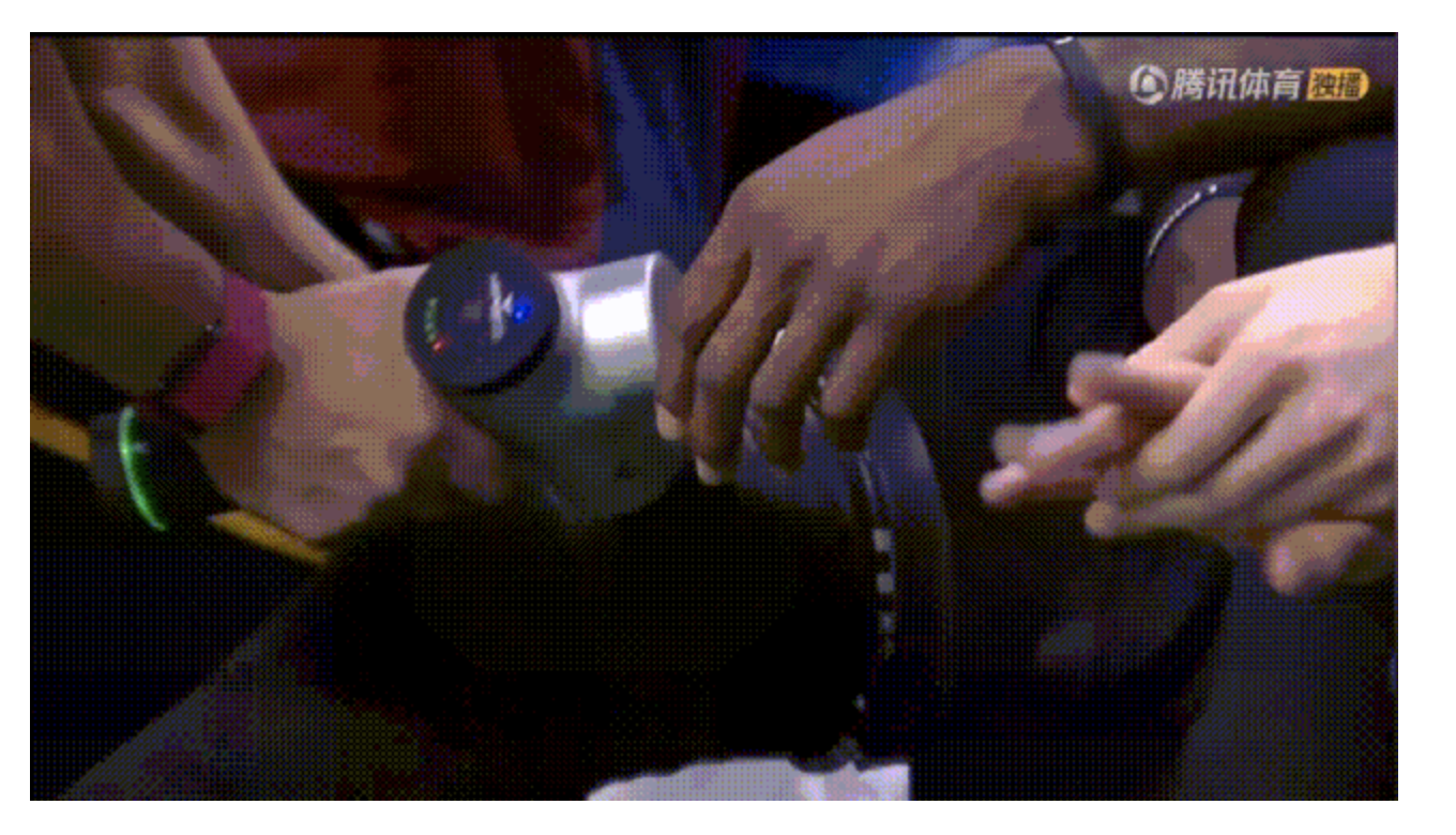 收到傳票后,蘇州菠蘿健康科技有限公司委托三聚陽(yáng)光和易聚律所應(yīng)訴并提起無(wú)效宣告請(qǐng)求。然而經(jīng)過多日檢索,搜遍了各數(shù)據(jù)庫(kù)都未能找到2018年2月22日之前公開的類似設(shè)計(jì)。律師們正在深入檢索之際,一位NBA球迷提供了線索,稱曾在2018年2月的NBA比賽轉(zhuǎn)播中,看到過詹姆斯用十字形的筋膜槍放松。群眾的眼睛是雪亮的,在某視頻網(wǎng)站找到了這段錄像:2018年2月12日的NBA常規(guī)賽中,果然有球隊(duì)工作人員使用一款筋膜槍為詹姆斯按摩膝蓋的鏡頭。