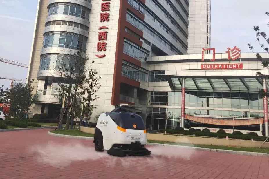 “蝸小白”無人清掃消毒車,由天使百人會合投企業(yè)北京智行者科技有限公司研發(fā)制造,每小時能清掃3500平米,1臺可以代替4-6名保潔員,負責整個醫(yī)院的室外路面清潔,每天定時噴灑消毒液進行消毒,對于重點區(qū)域進行多次消毒。保潔人員只需每天進行簡單的維護,充電、倒垃圾、添加消毒液、車身消毒等工作,不用長時間暴露于醫(yī)院工作場所,極大的減少被傳染風險。目前,蝸小白已在全國多個重點新型冠狀肺炎患者收治醫(yī)院投入使用。